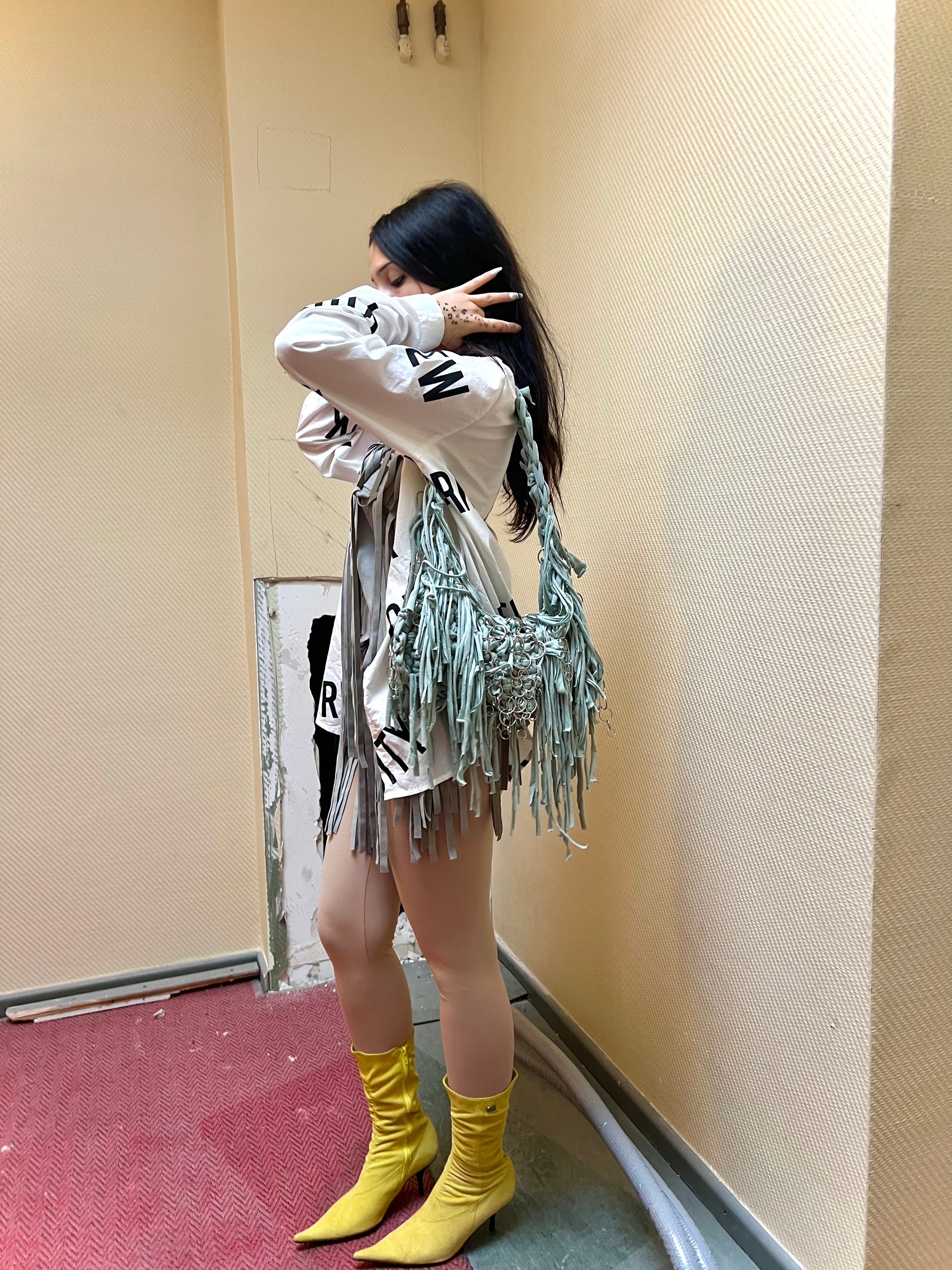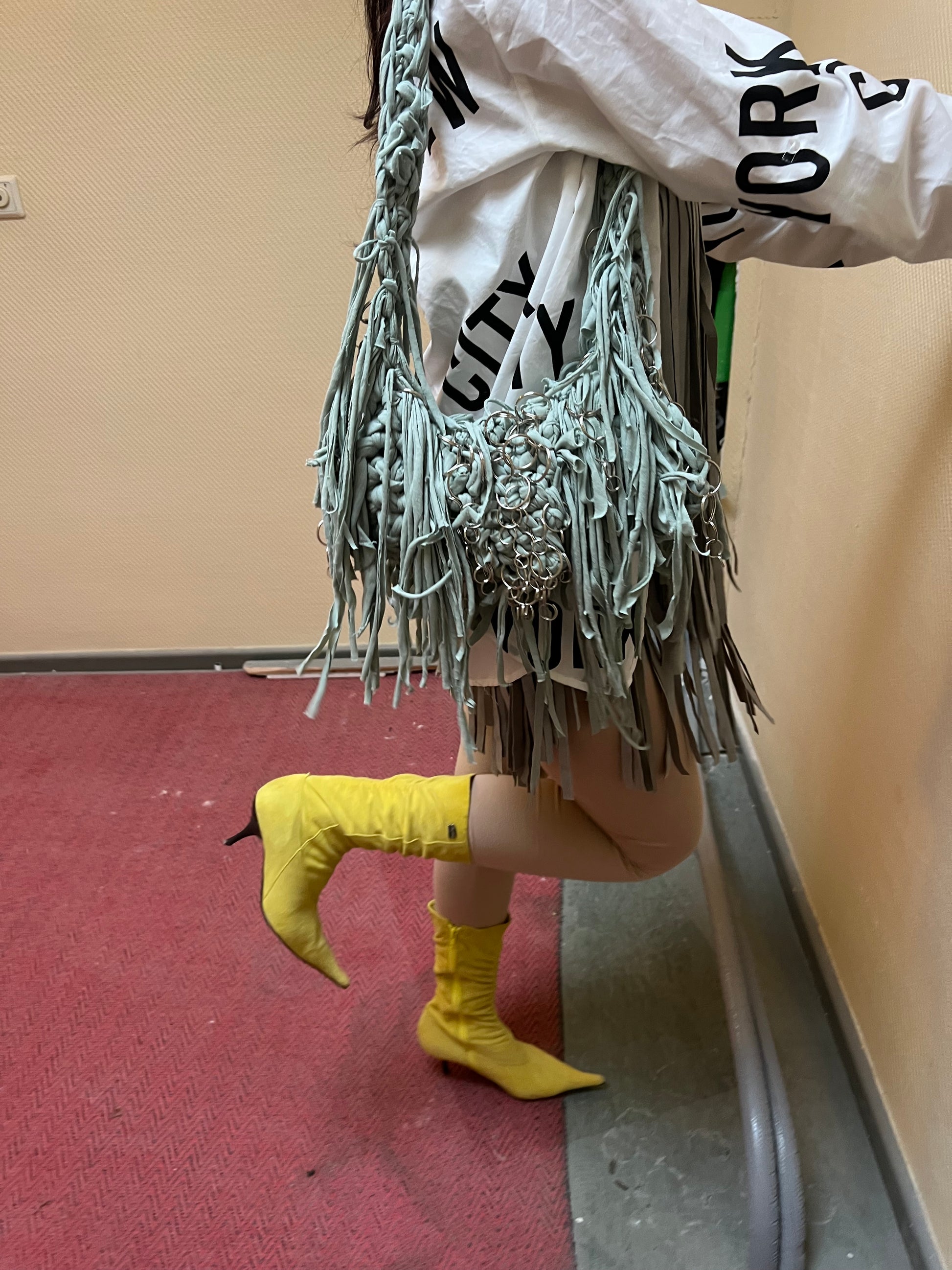 This bag is one of the first in my collection of crochet bags that can close, it has inner lining and fits all necessary items. Is decorated with lots of silver rings and fringes ≈35x20 cm and flexible shoulder strap. There is only one like this available